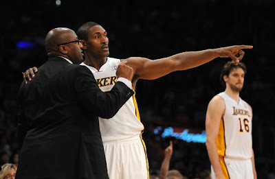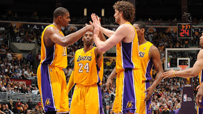 Bynum'ın cezadan dönmesiyle birlikte yine ligin en korkutucu pota altı ikilisine sahip oldu Lakers.Gasol-Bynum ikilisi gerçekten çok korkutucu bir ikiliydi ancak bahsettiğim guard sorunu bu 2 oyuncunun yeterince top alamamasını sağlıyordu.Kobe'nin insafına kalmış bir hücum vardı Lakers'ta.O da biraz eski günleri hatırladı ve böylece bir kazanıp bir kaybeden Lakers oldu.Bu 3 oyuncunun arasındaki top paylaşımı dengeyi bulduğunda ise bu sefer de yan parçalardan gelen katkı azaldı.Özellikle Blake'in sakatlığı Lakers'a ağır bir darbe vurdu çünkü o sahadayken Lakers daha iyi bir takım oluyordu.Metta World Peace ise ligin en kötü oyuncusu eleştirilerini alacak derecede kötü oynuyordu.Derek Fisher'sa yaşının getirdiği dezavantajları sonuna kadar yaşıyordu.Benchten gelen etkili isimlerden olan Matt Barnes ta kalçasındaki sakatlıkla uğraşıyordu.