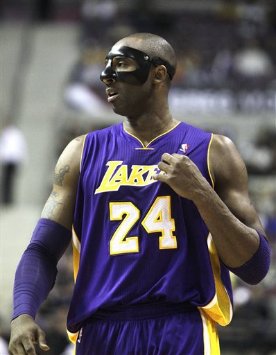 Los Angeles Lakers'ın süperyıldızı Kobe Bryant son günlerde All-Star maçında kırılan burnundan sıkıntı yaşıyor.Kobe burnunu korumak için son 3 karşılaşmada özel bir maskeyle sahada yer aldı.Bu 3 karşılaşmada da harika oynayan Kobe deplasmanda oynanan maçta Detroit'e karşı değişikliğe gitti ve siyah maske taktı. Ancak bu maskeye alışamamış olmasından gerek Kobe maça çok kötü başladı ve art arda şutlarda isabet bulamadı.Daha sonra maske değişikliğine giden Kobe eski maskesine geri döndü ve kendini toparladı üstüne de maçı uzatmaya götüren basketi son saniyede Tayshaun Prince'in uzun kolları arasından Detroit potasına yolladı.Ancak bu şut bile Lakers'ın kazanmasını sağlayamadı.Kobe-Gasol-Bynum'ın toplam 72 sayı attığı maçta diğer oyunculardan sadece 13 sayılık katkı gelince Lakers maçı kaybetti..
